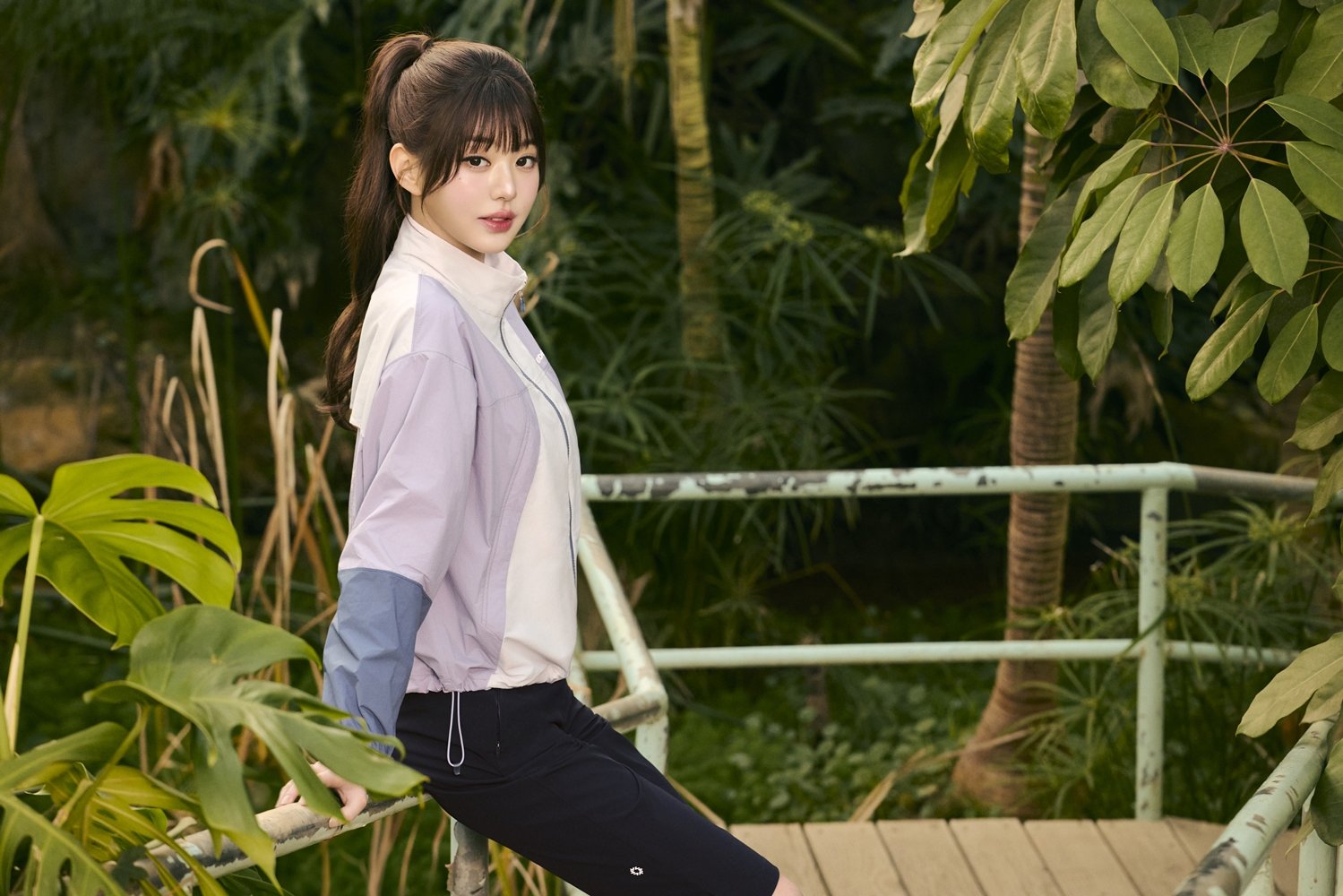 장원영은 아이스 블루, 올리브, 라일락 등 화사한 컬러 자켓을 활용해 밝고 경쾌한 룩을 완성했다. 가볍고 쾌적한 여성 아우터를 중심으로 자연과 도심을 오가는 라이프스타일을 세련되게 표현했다.
