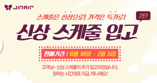 진에어는 여름시즌을 맞아 6월부터 8월 사이 증편하는 국제선 노선 특가 프로모션을 10일부터 7월 5일까지 진행한다.