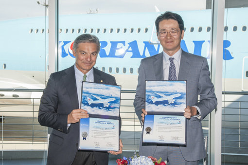 대한항공은 25일(현지시각) 미국 시애틀 보잉 에버렛 딜리버리 센터에서 B747-8i 차세대 항공기 1호기 인수 행사를 가졌다.
