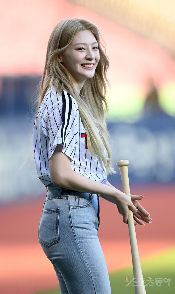 16일 서울 잠실야구장에서 ‘2022 신한은행 MY CAR KBO리그’ 삼성 라이온즈와 LG 트윈스 경기가 열렸다. 경기 전 걸그룹 스테이씨 세은이 시타를 위해 그라운드로 나오고 있다.
