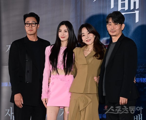 배우 소지섭, 나나, 김윤진, 윤종석 감독이 18일 서울 광진구 자양동 롯데시네마 건대입구점에서 열린 영화 ‘자백’ 언론시사회에서 포즈를 취하고 있다.