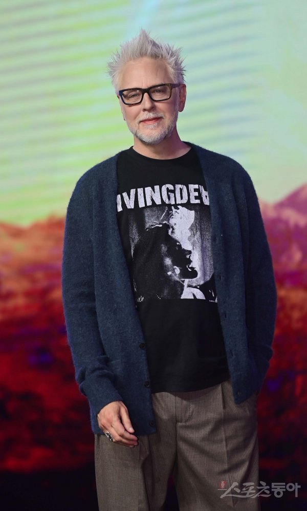 감독 제임스 건이 18일 서울 영등포구 여의도동 콘래드 서울에서 열린 ‘가디언즈 오브 갤럭시: Volume 3‘ 내한 기자간담회에서 포즈를 취하고 있다.