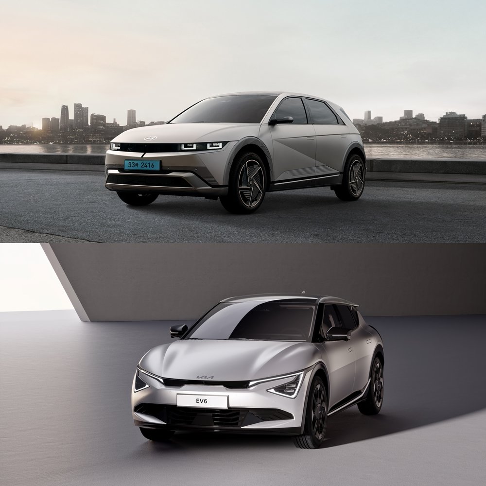 E-GMP 기반 전용 전기차인 현대차 아이오닉 5와 기아 EV6가 시장에 출시된 2021년부터 2023년까지 3년간 국내에 등록된 전기차 택시는 3만3400대로 급증했다. 현대차 아이오닉 5(위쪽)와 기아 EV6. 사진제공|현대차