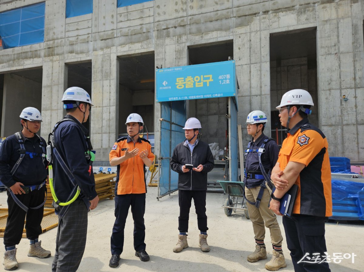 양주소방서는 5월 14일 양주 회천신도시 아파트 공사현장을 방문해 소방안전 점검하고 있다. 사진제공ㅣ양주시