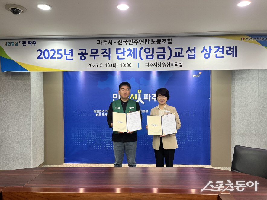 파주시는 지난 13일 시청 영상회의실에서 공무직 근로자의 교섭대표 노동조합인 전국민주연합노동조합 파주시지부와 상견례를 갖고 2025년 단체(임금)교섭 보충협약을 체결했다고 15일 밝혔다.