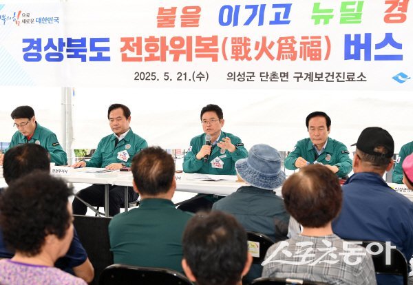 경북도는 21일 의성군 단촌면 구계보건진료소에서 ‘경상북도 전화위복(戰火爲福) 버스’ 네 번째 현장 회의를 개최하고, 의성 산불 피해 복구 및 구계리 마을 재건 방안에 대해 논의했다.이날 회의는 이철우 경북도지사가 직접 주재했으며, 김주수 의성군수, 최훈식 의성군의회 의장, 최태림·이충원 도의원, 의성군의회 의원과 경북도 및 의성군 관계자, 구계리 주민 등 100여 명이 참석했다.