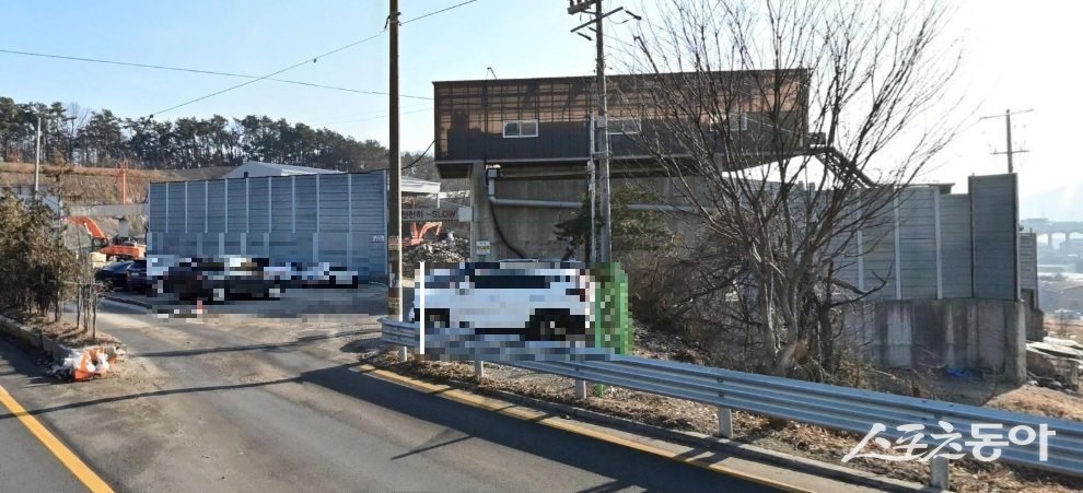 그러나 부지내 313-12번지에는 2021년 10월 7일 사용 승인을 받은 일반 철골구조의 골재 저장 창고(연면적 780㎡)가 현재까지 공장 형태로 운영 중인 것으로 확인됐다.