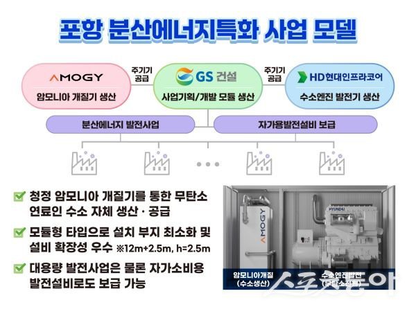 영일만 산업단지를 중심으로 암모니아 기반 수소엔진 발전설비를 구축하고 이차전지 기업에 무탄소 전력을 공급함으로써 친환경 산업 인프라를 조성한다는 전략이다.