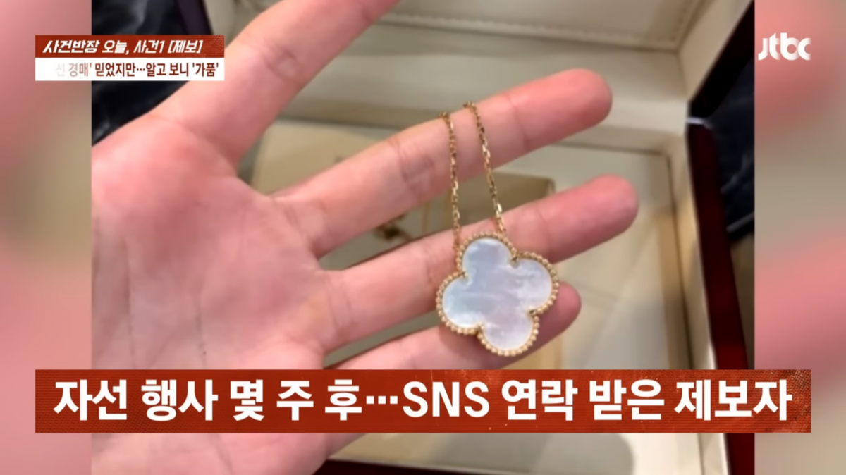 JTBC ‘사건반장’ 보도에 따르면, 제보자 A씨는 2월 말 해당 출연자가 연 생일파티 겸 자선 행사에 참석해 명품 브랜드 목걸이를 220만원에 낙찰받았다. 하지만 한 달 뒤 같은 행사에서 팔찌를 산 다른 참가자로부터 “가품이었다”는 메시지를 받았고, 감정 결과 목걸이 역시 짝퉁으로 드러났다. 감정가는 약 100만원으로, 실제 시세보다 2배 넘게 지불한 셈이다. 팔찌도 감정가 70만원 수준이었다.