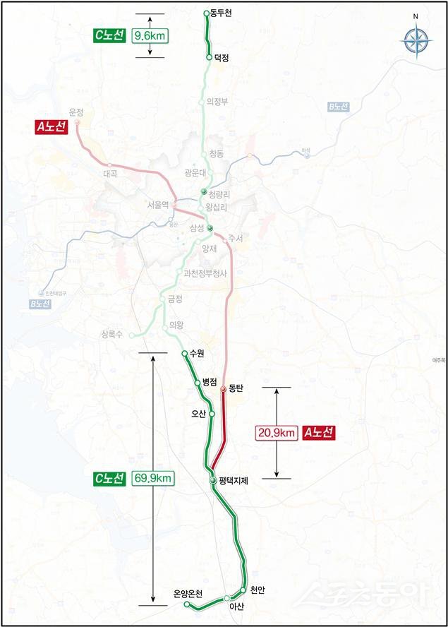 평택시(시장 정장선)는 GTX-A 노선 평택 연장 사업이 한국지방행정연구원 지방투자사업관리센터(LIMAC)의 타당성 조사 결과 경제성을 확보한 것으로 나타나, 본격적인 사업 추진에 탄력을 받을 전망이다(GTX 노선도). 사진제공|평택시