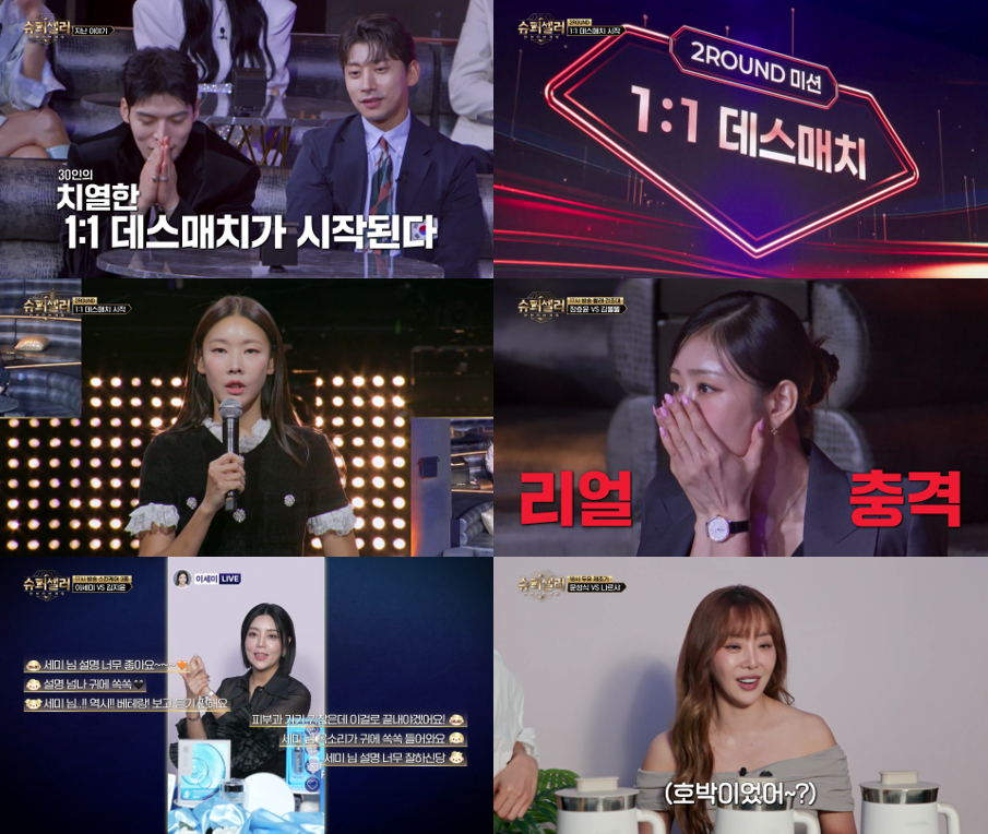 특히 블랙핑크 지수의 친언니로 알려진 ‘파워 인플루언서’ 김지윤과 “매출은 곧 실력”이라고 외친 베테랑 쇼호스트 이세미의 맞대결, ‘맨즈 뷰티계 일인자’ 문성식과 ‘걸 그룹 셀러 일인자’ 나르샤의 맞대결, ‘셀러 계 최연소’ 출신 이동은과 ‘셀러 계 늦깎이’ 야구선수 출신 유희관의 불꽃 튀는 맞대결이 펼쳐진다.