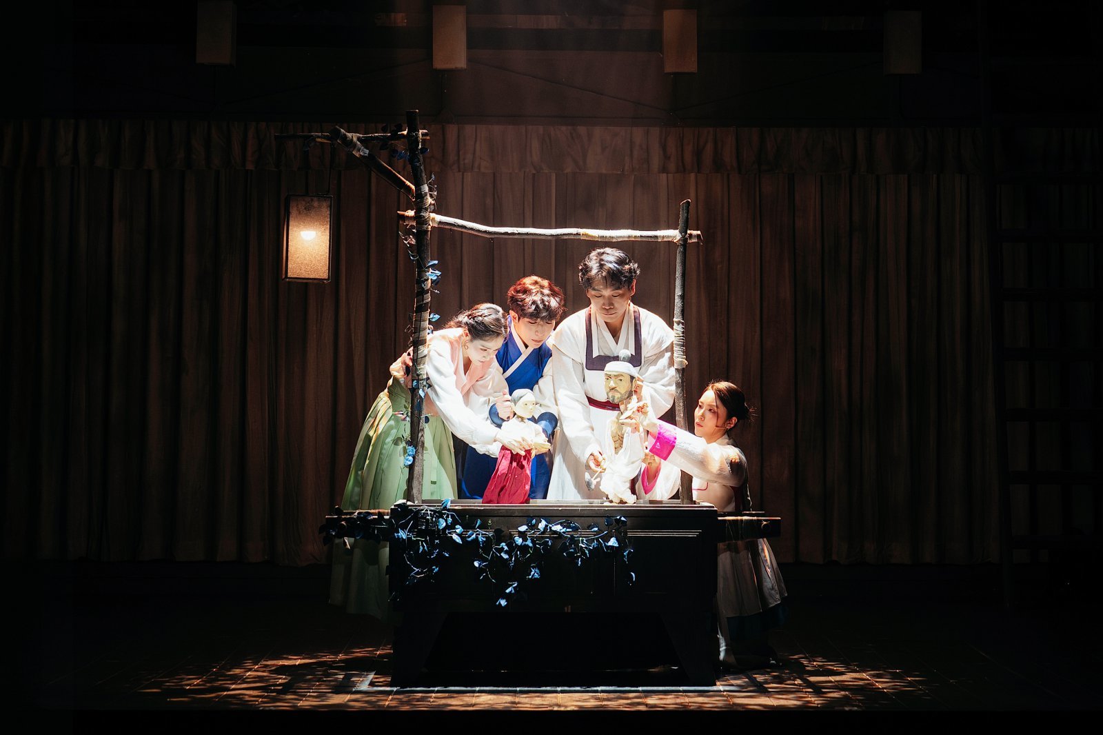 뮤지컬 ‘판’의 한 장면. 극 중 극 형식으로, 등장인물들이 인형극을 보여주고 있다. 사진제공 | 아이엠컬처