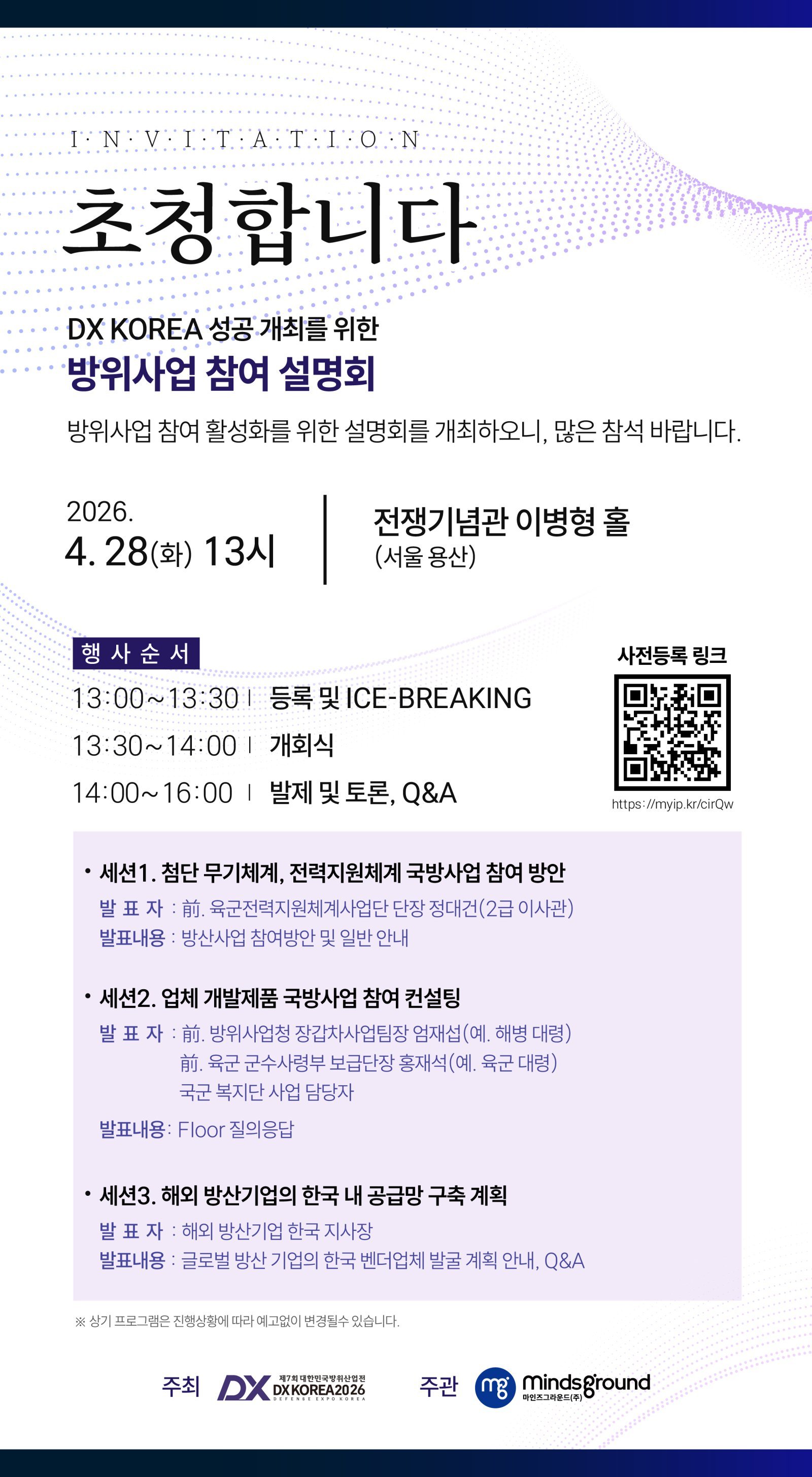 설명회는 9월 예정된 DX KOREA 2026의 성공적인 개최를 목표로 마련됐다. 방위산업 기업과 유관기관 관계자들에게 국방사업 참여 절차와 전략을 공유하고, 해외 공급망 연계 방안을 제시하는 데 목적을 뒀다. 행사는 28일 오후 1시 등록과 네트워킹을 시작으로 주제 발표와 질의응답이 차례대로 진행된다.