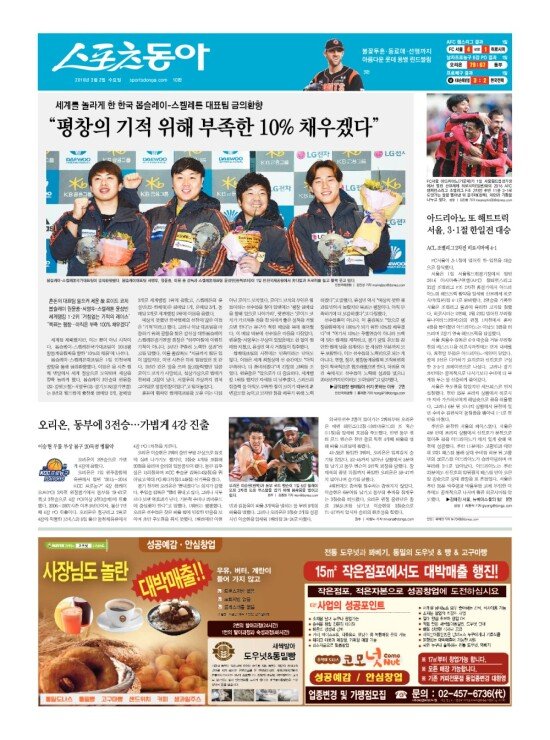 2008년 3월 15일자부터 최근 발행된 스포츠동아 신문 지면을 보실 수 있습니다. (지면 PDF파일 다운로드도 가능)
