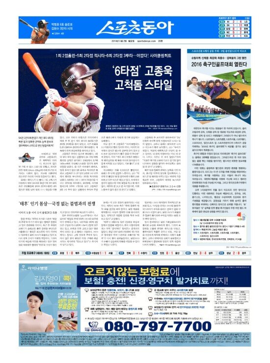 2008년 3월 15일자부터 최근 발행된 스포츠동아 신문 지면을 보실 수 있습니다. (지면 PDF파일 다운로드도 가능)