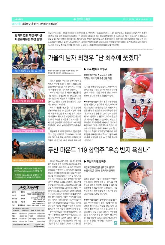 2008년 3월 15일자부터 최근 발행된 스포츠동아 신문 지면을 보실 수 있습니다. (지면 PDF파일 다운로드도 가능)