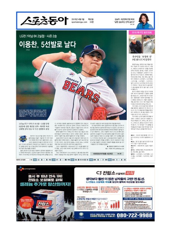 2008년 3월 15일자부터 최근 발행된 스포츠동아 신문 지면을 보실 수 있습니다. (지면 PDF파일 다운로드도 가능)
