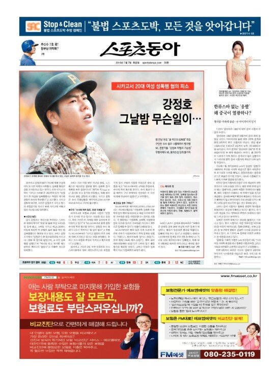 2008년 3월 15일자부터 최근 발행된 스포츠동아 신문 지면을 보실 수 있습니다. (지면 PDF파일 다운로드도 가능)