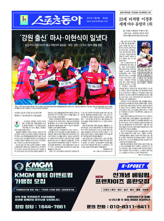 2008년 3월 15일자부터 최근 발행된 스포츠동아 신문 지면을 보실 수 있습니다. (지면 PDF파일 다운로드도 가능)