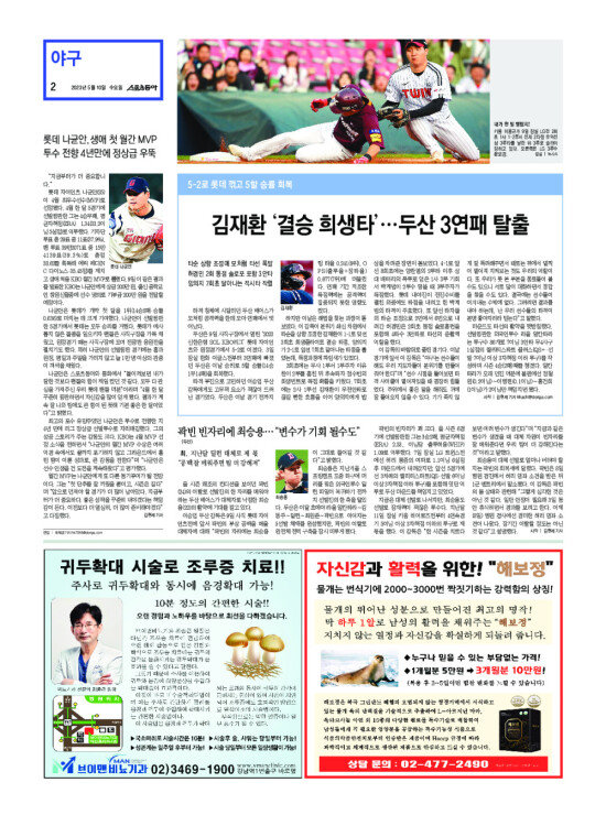 2008년 3월 15일자부터 최근 발행된 스포츠동아 신문 지면을 보실 수 있습니다. (지면 PDF파일 다운로드도 가능)