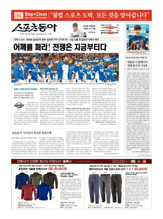 2008년 3월 15일자부터 최근 발행된 스포츠동아 신문 지면을 보실 수 있습니다. (지면 PDF파일 다운로드도 가능)