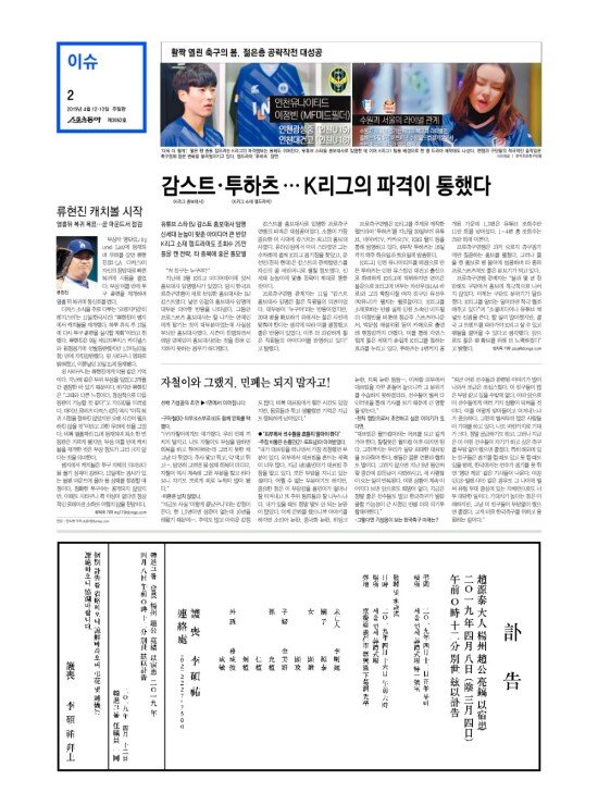 2008년 3월 15일자부터 최근 발행된 스포츠동아 신문 지면을 보실 수 있습니다. (지면 PDF파일 다운로드도 가능)