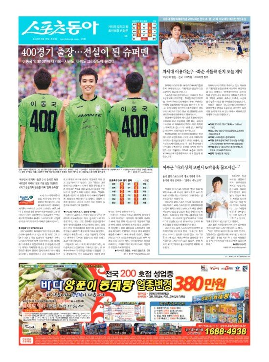 2008년 3월 15일자부터 최근 발행된 스포츠동아 신문 지면을 보실 수 있습니다. (지면 PDF파일 다운로드도 가능)