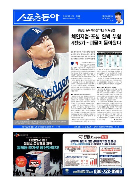 2008년 3월 15일자부터 최근 발행된 스포츠동아 신문 지면을 보실 수 있습니다. (지면 PDF파일 다운로드도 가능)