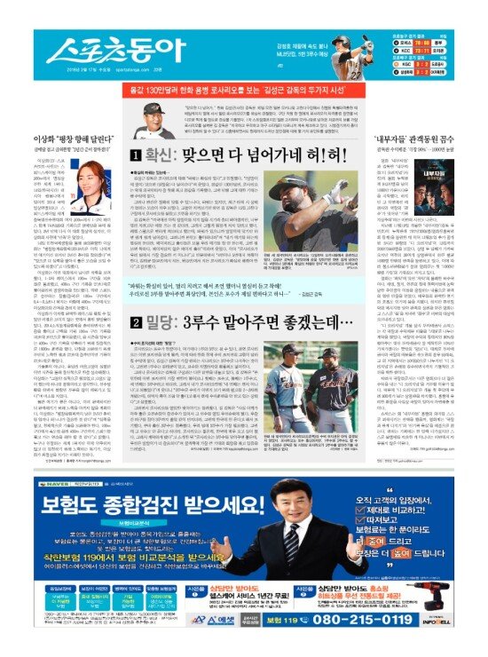 2008년 3월 15일자부터 최근 발행된 스포츠동아 신문 지면을 보실 수 있습니다. (지면 PDF파일 다운로드도 가능)
