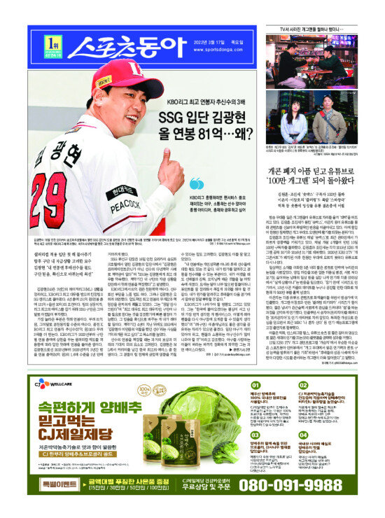 2008년 3월 15일자부터 최근 발행된 스포츠동아 신문 지면을 보실 수 있습니다. (지면 PDF파일 다운로드도 가능)