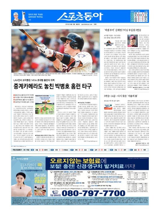 2008년 3월 15일자부터 최근 발행된 스포츠동아 신문 지면을 보실 수 있습니다. (지면 PDF파일 다운로드도 가능)
