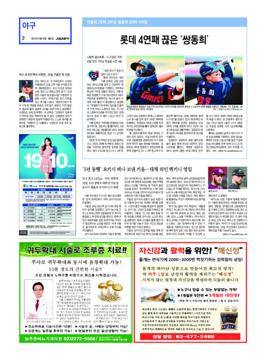 2008년 3월 15일자부터 최근 발행된 스포츠동아 신문 지면을 보실 수 있습니다. (지면 PDF파일 다운로드도 가능)