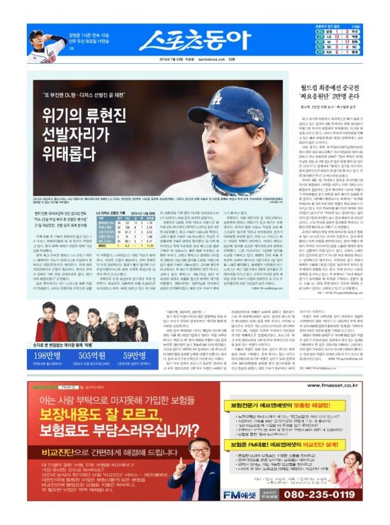 2008년 3월 15일자부터 최근 발행된 스포츠동아 신문 지면을 보실 수 있습니다. (지면 PDF파일 다운로드도 가능)