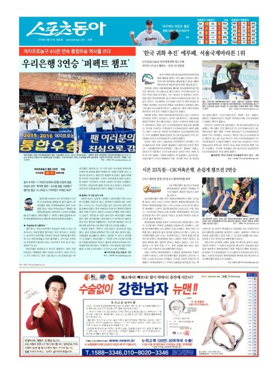 2008년 3월 15일자부터 최근 발행된 스포츠동아 신문 지면을 보실 수 있습니다. (지면 PDF파일 다운로드도 가능)