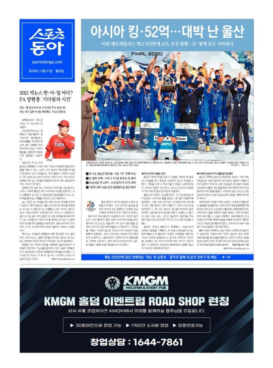 2008년 3월 15일자부터 최근 발행된 스포츠동아 신문 지면을 보실 수 있습니다. (지면 PDF파일 다운로드도 가능)