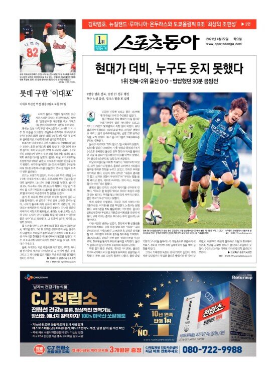 2008년 3월 15일자부터 최근 발행된 스포츠동아 신문 지면을 보실 수 있습니다. (지면 PDF파일 다운로드도 가능)