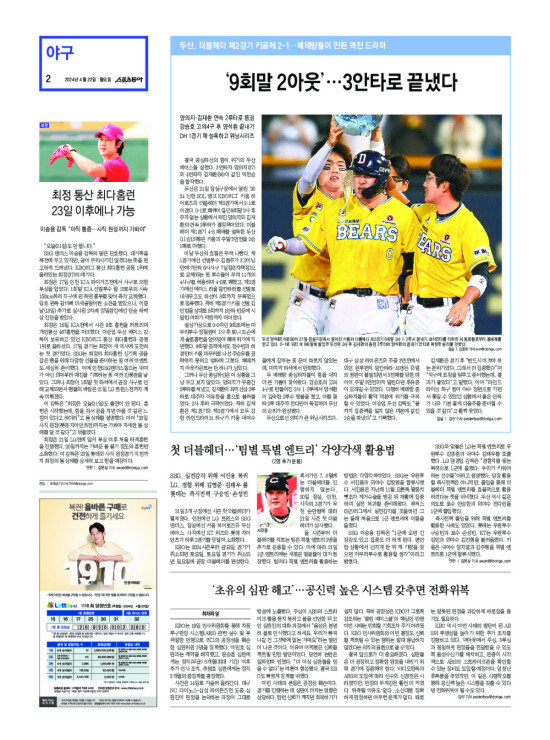 2008년 3월 15일자부터 최근 발행된 스포츠동아 신문 지면을 보실 수 있습니다. (지면 PDF파일 다운로드도 가능)