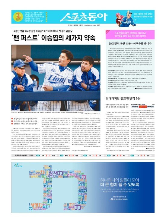 2008년 3월 15일자부터 최근 발행된 스포츠동아 신문 지면을 보실 수 있습니다. (지면 PDF파일 다운로드도 가능)