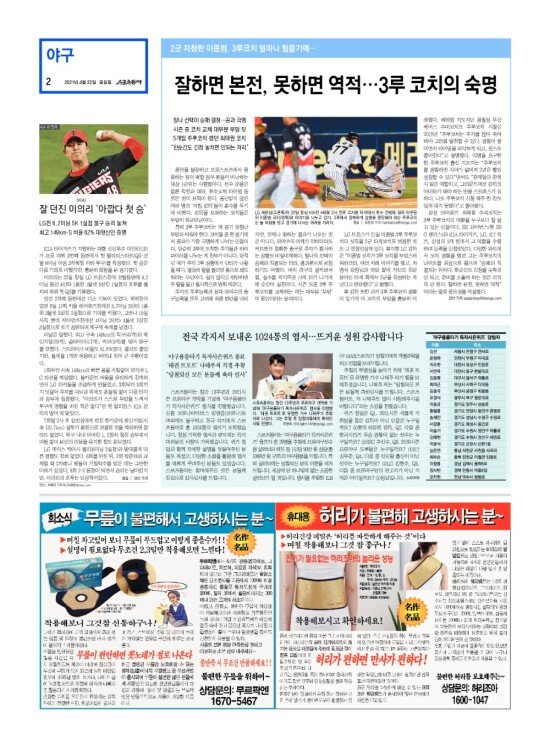 2008년 3월 15일자부터 최근 발행된 스포츠동아 신문 지면을 보실 수 있습니다. (지면 PDF파일 다운로드도 가능)