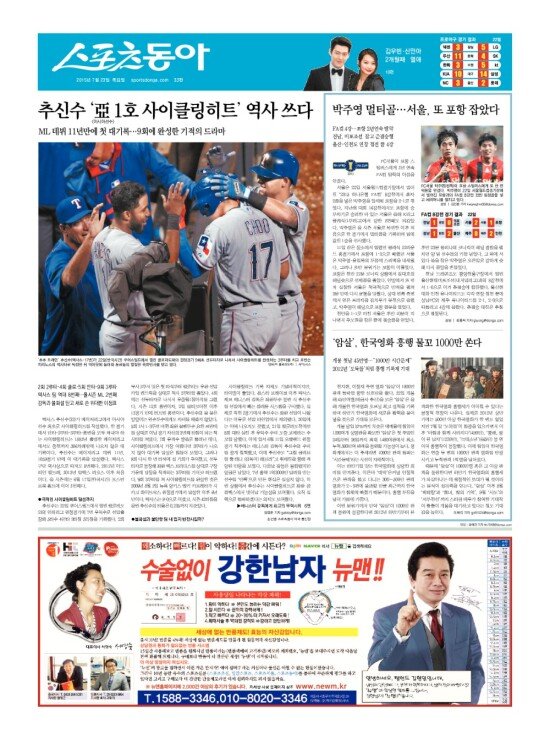 2008년 3월 15일자부터 최근 발행된 스포츠동아 신문 지면을 보실 수 있습니다. (지면 PDF파일 다운로드도 가능)