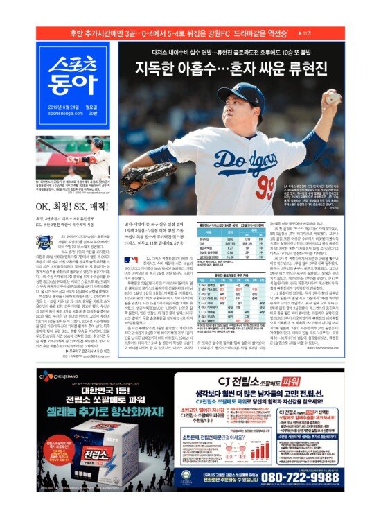 2008년 3월 15일자부터 최근 발행된 스포츠동아 신문 지면을 보실 수 있습니다. (지면 PDF파일 다운로드도 가능)