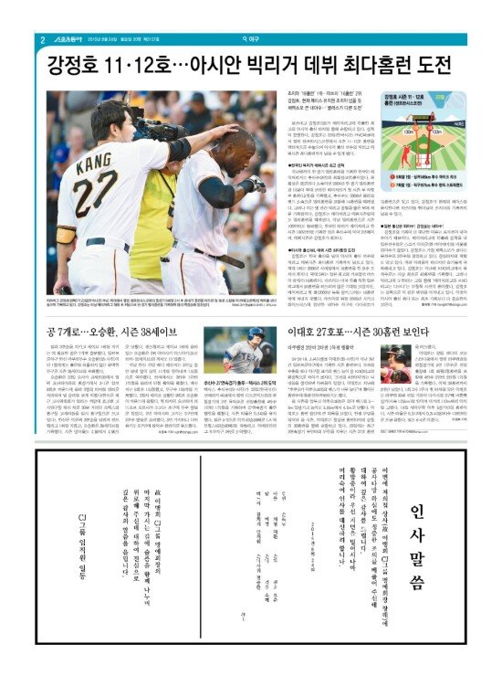 2008년 3월 15일자부터 최근 발행된 스포츠동아 신문 지면을 보실 수 있습니다. (지면 PDF파일 다운로드도 가능)