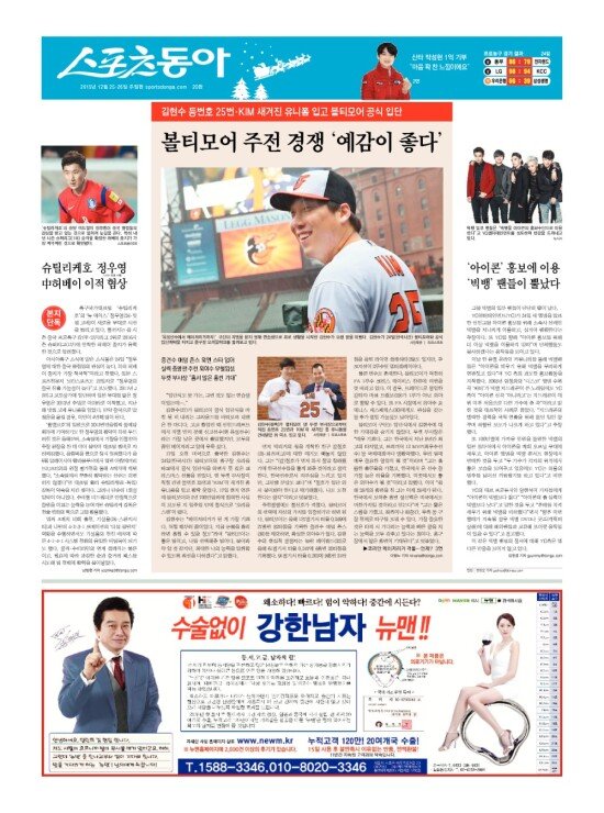 2008년 3월 15일자부터 최근 발행된 스포츠동아 신문 지면을 보실 수 있습니다. (지면 PDF파일 다운로드도 가능)