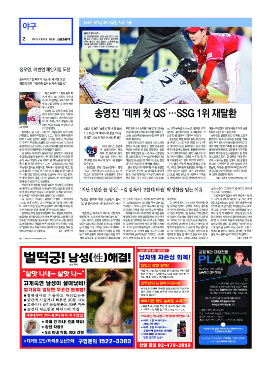 2008년 3월 15일자부터 최근 발행된 스포츠동아 신문 지면을 보실 수 있습니다. (지면 PDF파일 다운로드도 가능)