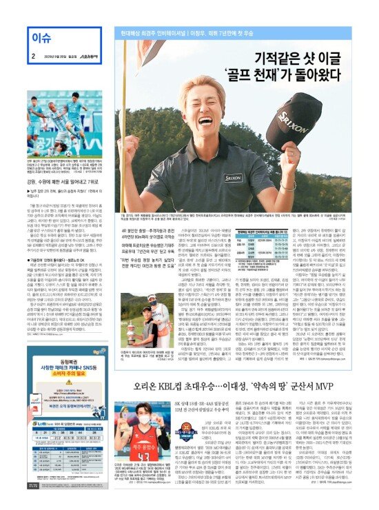 2008년 3월 15일자부터 최근 발행된 스포츠동아 신문 지면을 보실 수 있습니다. (지면 PDF파일 다운로드도 가능)