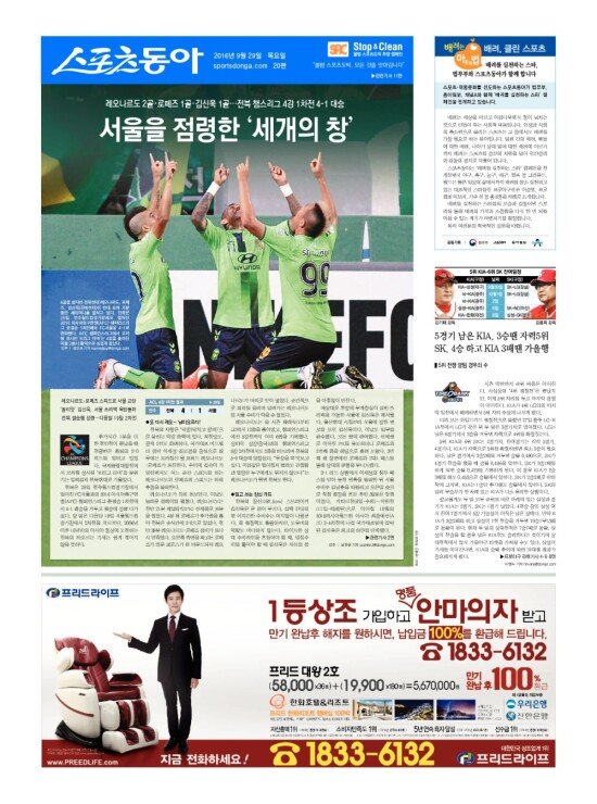 2008년 3월 15일자부터 최근 발행된 스포츠동아 신문 지면을 보실 수 있습니다. (지면 PDF파일 다운로드도 가능)