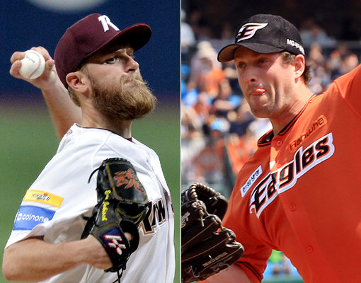 키움 에릭 요키시(왼쪽)-한화 채드 벨. 사진|스포츠동아DB·한화 이글스