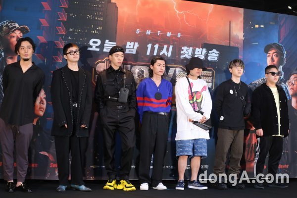 26일 오후 서울 마포구 CJ E&M센터에서 열린 Mnet \'쇼미더머니8\' 제작발표회에서 출연진이 포토타임을 하고 있다.
