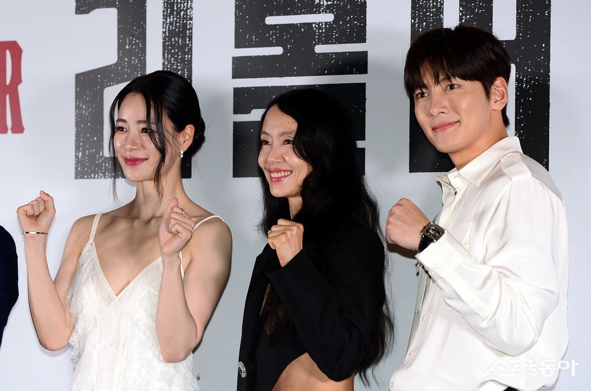 31일 서울 강남구 삼성동 메가박스 코엑스점에서 열린 영화 ‘리볼버’ 언론시사회에 참석한 임지연, 전도연, 지창욱이 포즈를 취하고 있다. 김민성 기자 marineboy@donga.com