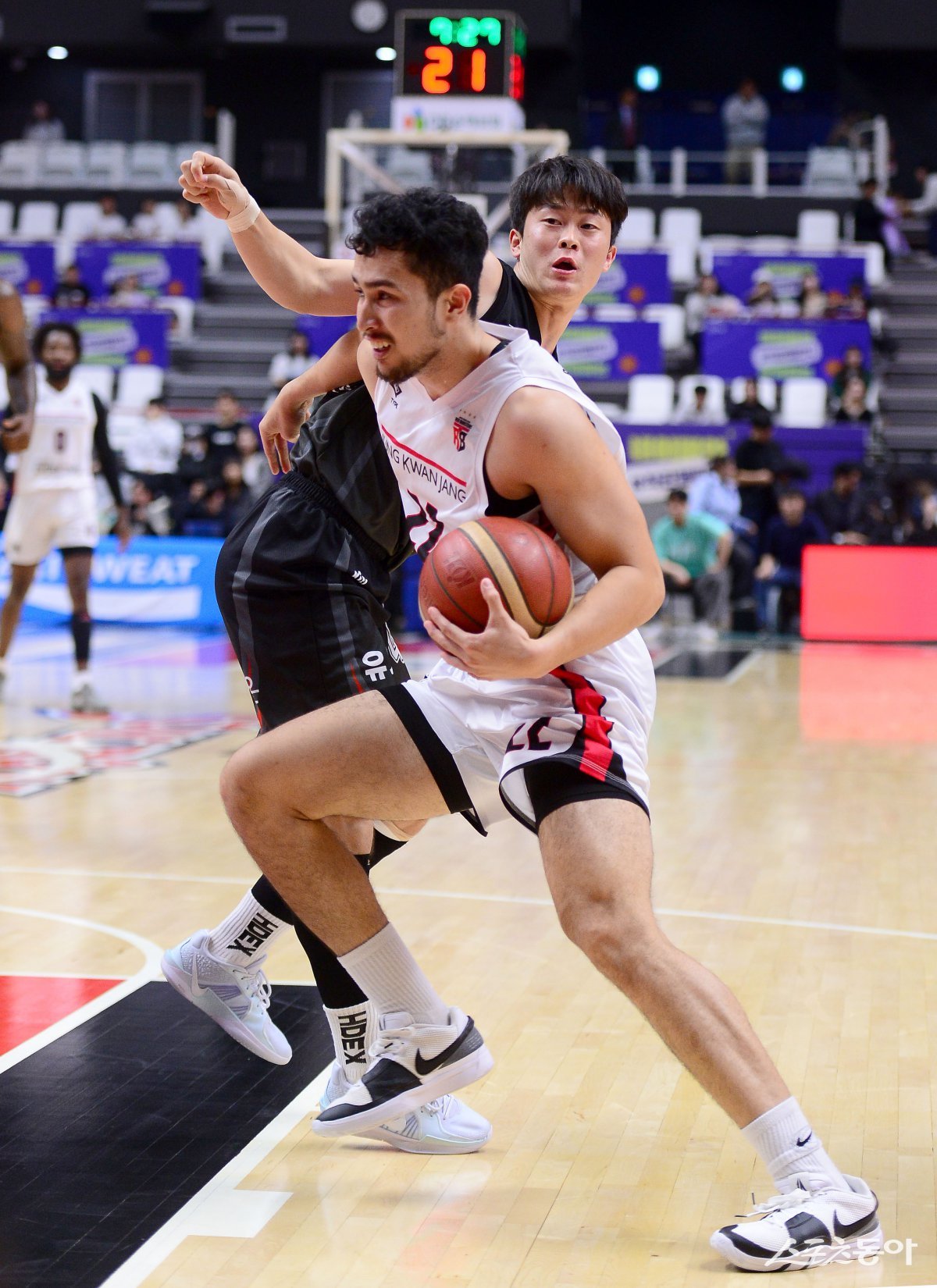 11일 수원kt아레나에서 열린 ‘2024-2025 프로농구’ KT와 정관장 경기에서 정관장 하비 고메즈가 KT의 수비를 뚫고 골밑을 공격하고 있다. 수원|김종원 기자 won@donga.com
